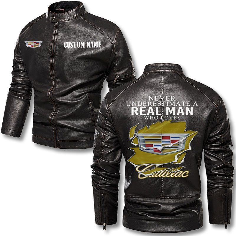 Never Underestimate A Real Man Who Loves Cadillac Motorcycle Leather Jacket