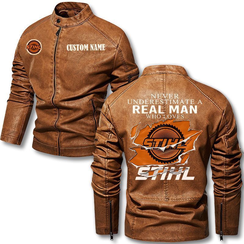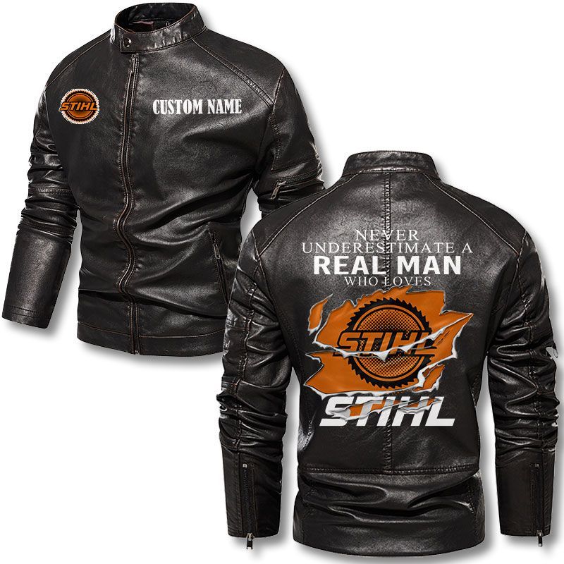 Never Underestimate A Real Man Who Loves Stihl Motorcycle Leather Jacket