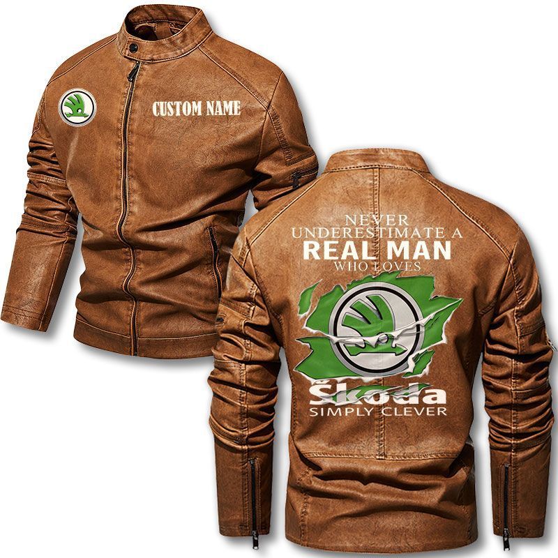 Never Underestimate A Real Man Who Loves Skoda Motorcycle Leather Jacket