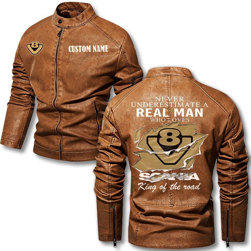 Never Underestimate A Real Man Who Loves Scania V8 Motorcycle Leather Jacket