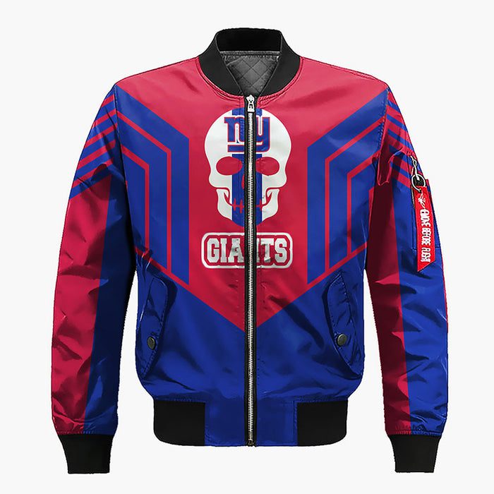 New York Giants Skull Blue Red Bomber Jacket For Women Men