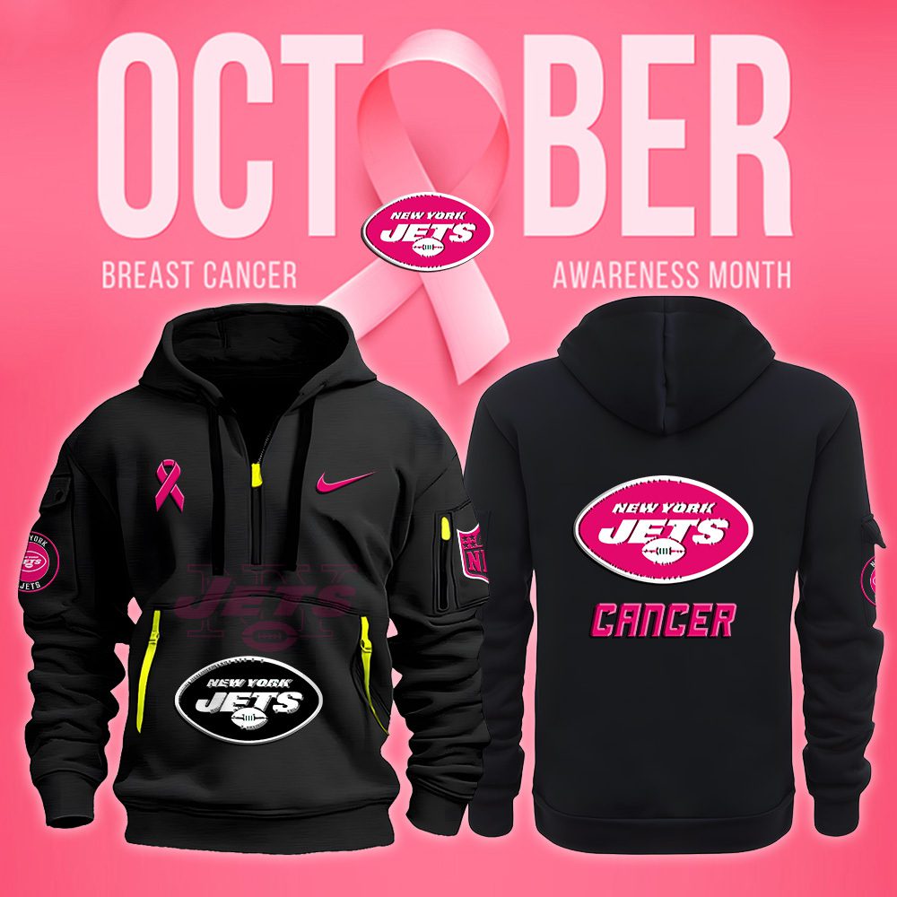 New York Jets Nfl October Breast Cancer Awareness Month Quarter Zip Hoodie