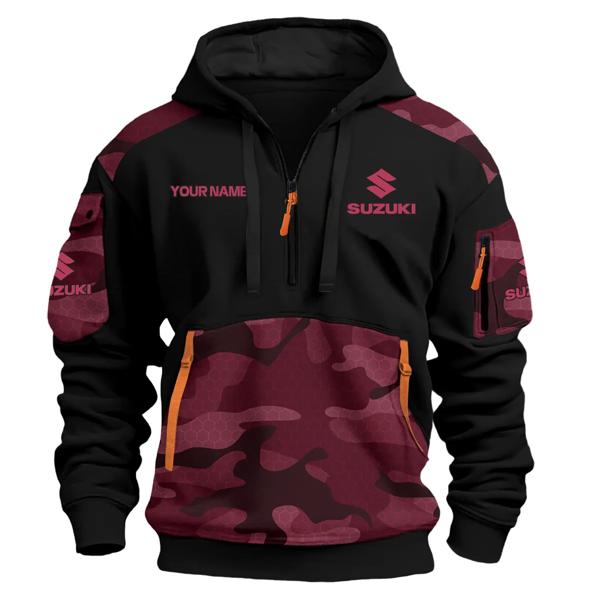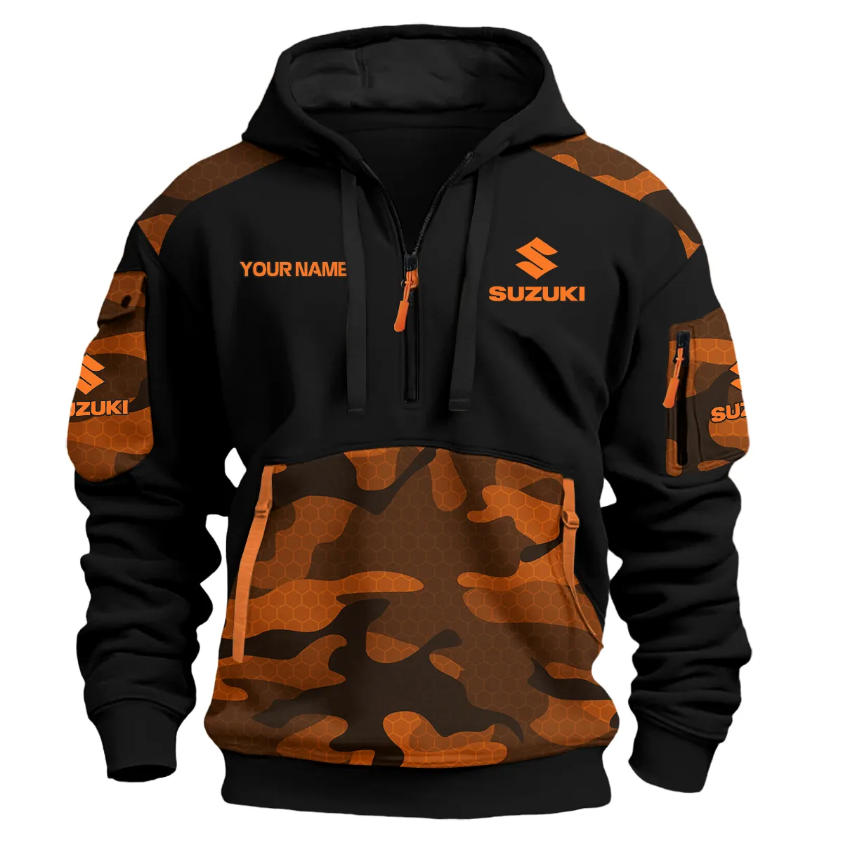Suzuki Motorcycles Exclusive Logo Hoodie Half Zipper Orange