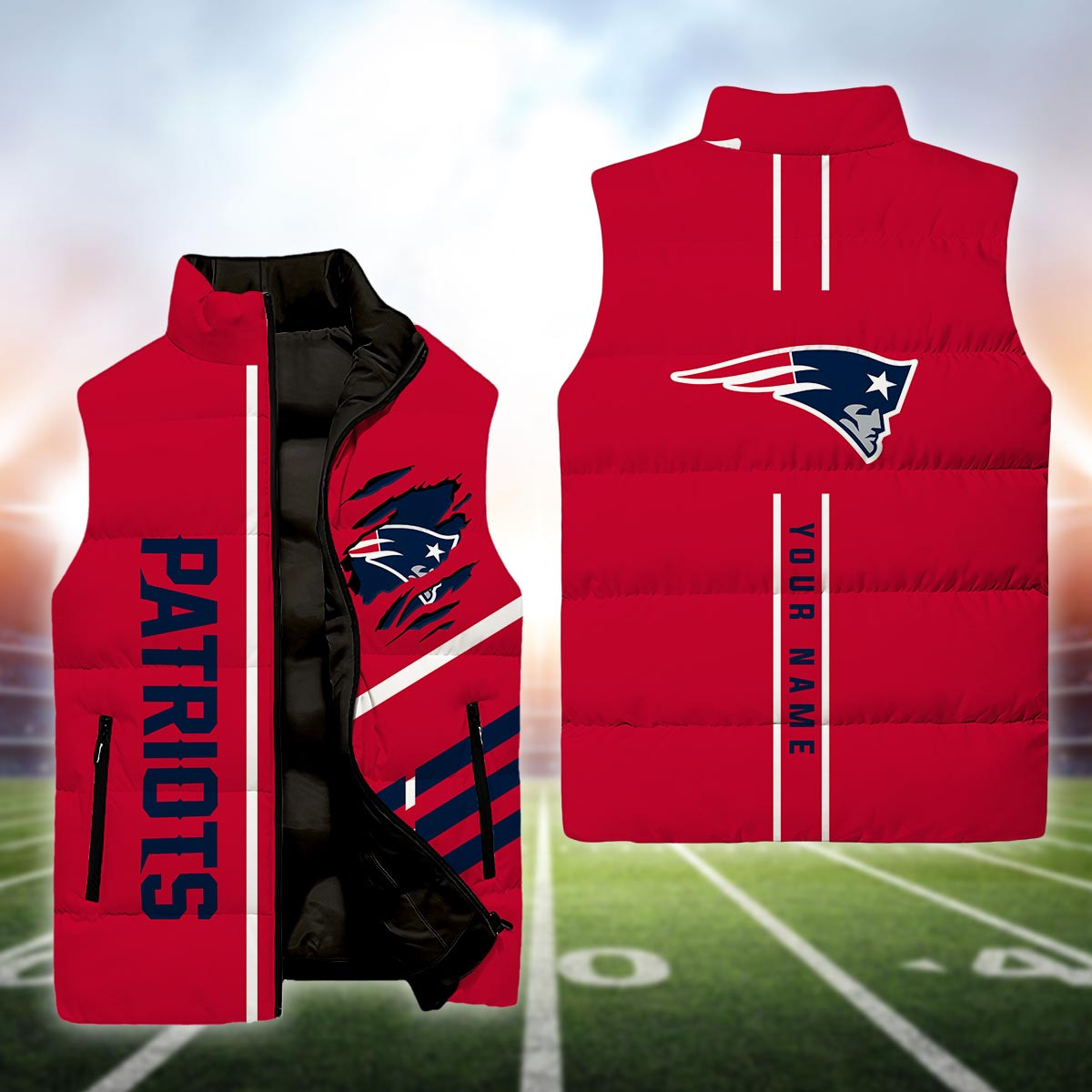 New England Patriots Nfl Sleeveless Puffer Jacket Custom Name For Fans Gifts