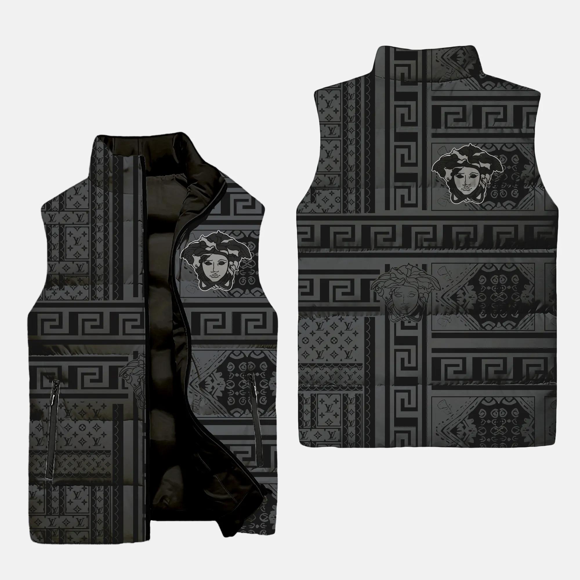 Versace Black Grey Patten Luxury Brand 3D Sleeveless Puffer Jacket For Men Women