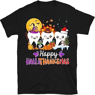 Happy Hallothanksmas Dental Boo Crew Dentist Assistant Shirt Tooth Halloween Thanksgiving Christmas Hallothanksmas – Black/3X-Large