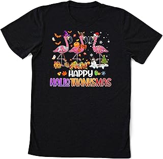 Happy HalloThanksmas Flamingo Shirt Funny Flamingo Halloween Thanksgiving Christmas T-Shirt