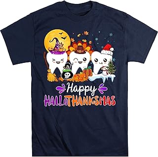 Happy Hallothanksmas Dental Boo Crew Dentist Assistant Shirt Tooth Halloween Thanksgiving Christmas Hallothanksmas – Navy/Large