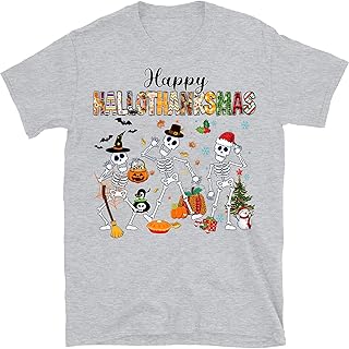 Happy Hallothanksmas Skeleton Chritsmas Thanksgiving Gift Skeleton Dancing Fall Shirt