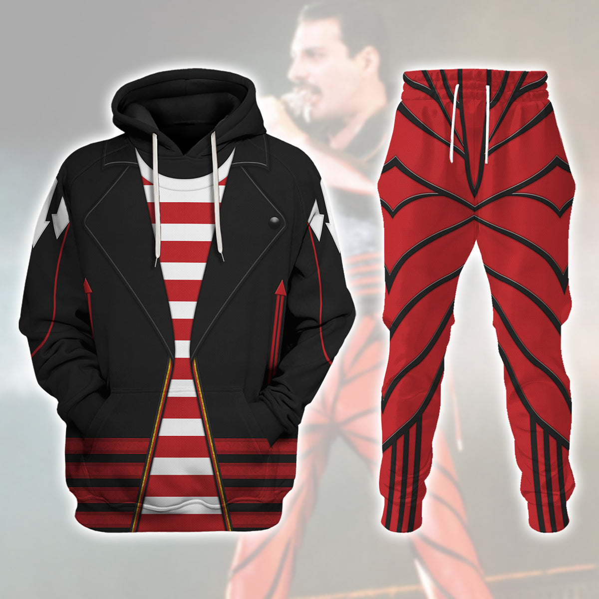 Freddie Mercury Ver 1 Costume Hoodie Tracksuiit Sweatpants Cosplaytracksuit