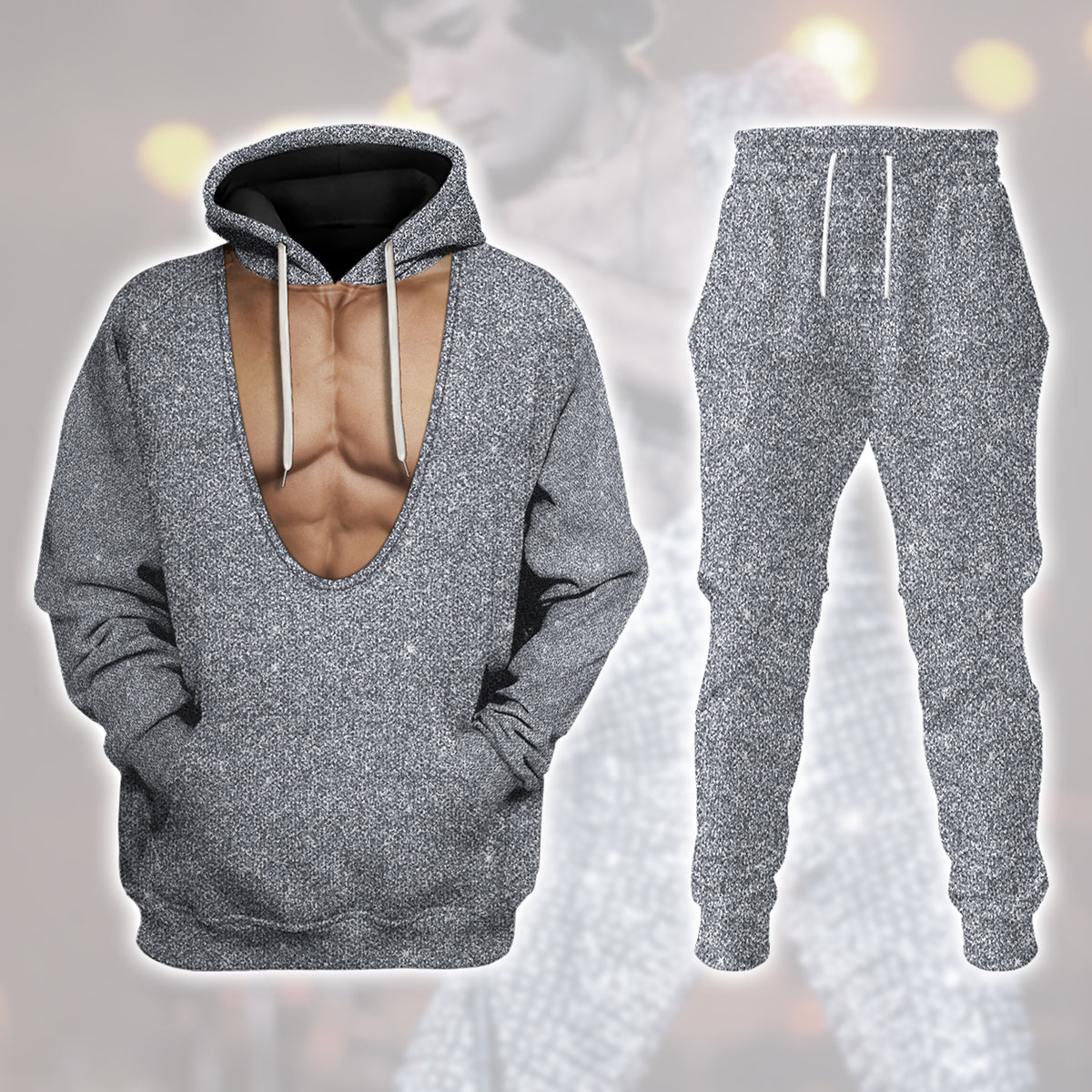 Freddie Mercury Sparkly Silver Sequined Bodysuit Costume Hoodie Tracksuiit Sweatpants Cosplaytracksuit
