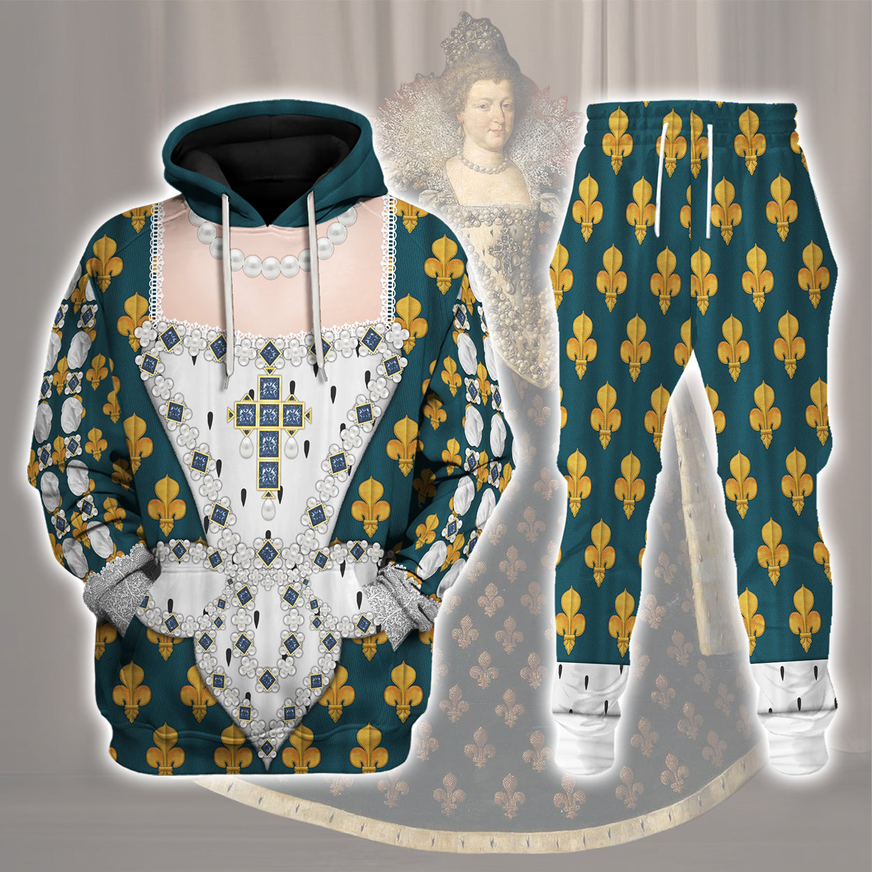 Marie De Medici Queen Of France Costume All Over Print Cosplay Hoodie Tracksuit