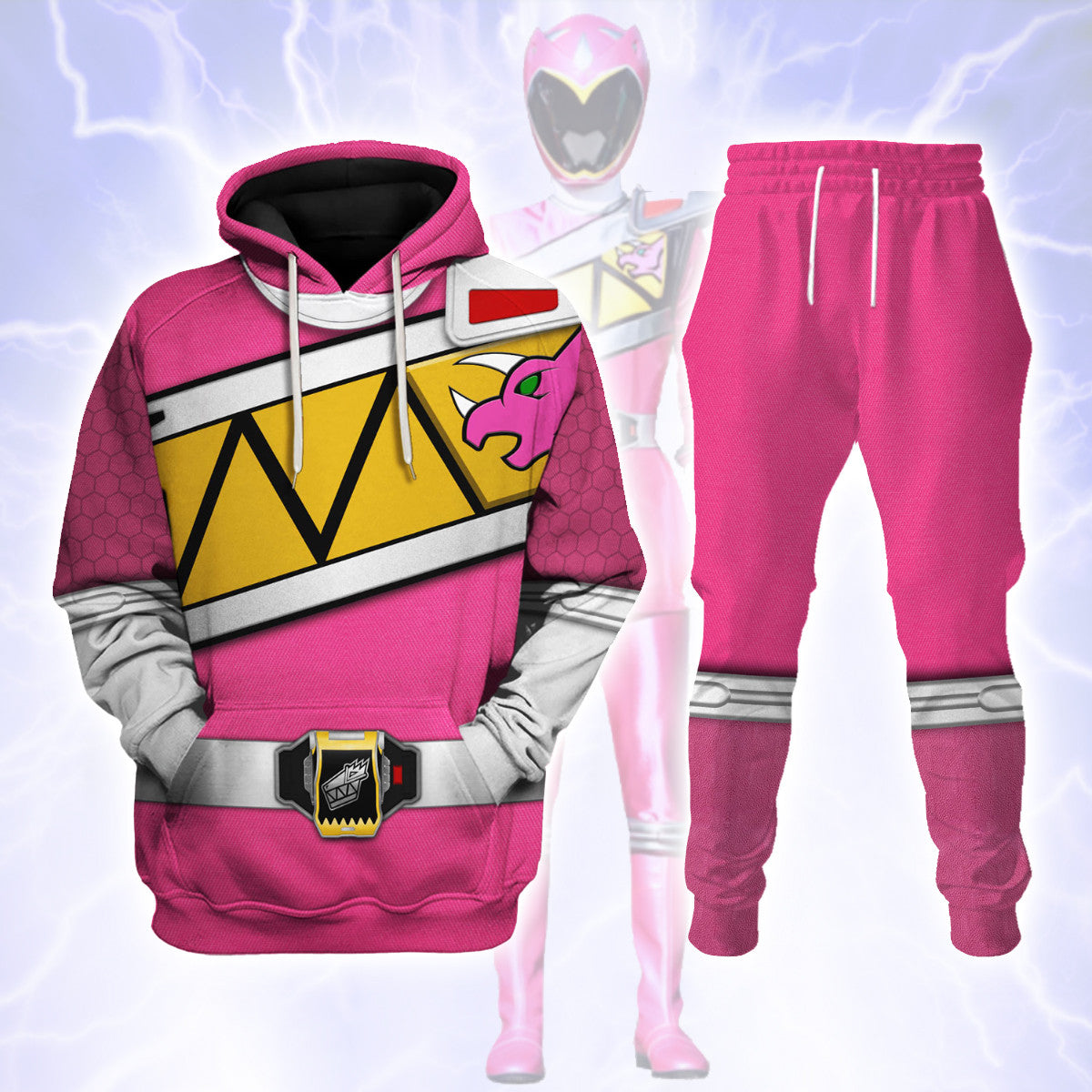 Pink Power Rangers Dino Charge Hoodies Tracksuit