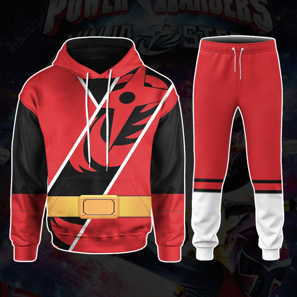 Power Ranger Ninja Steel Red Ranger Costume Cosplay Hoodie Tracksuiit Sweatpants Cosplaytracksuit