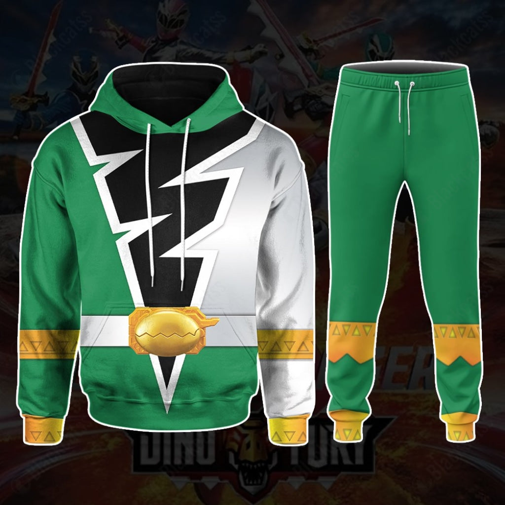 Power Rangers Dino Fury Green Ranger Costume Cosplay Hoodie Tracksuiit Sweatpants Cosplaytracksuit