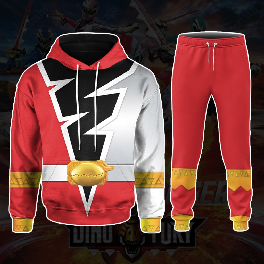 Power Rangers Dino Fury Red Ranger Costume Cosplay Hoodie Tracksuiit Sweatpants Cosplaytracksuit
