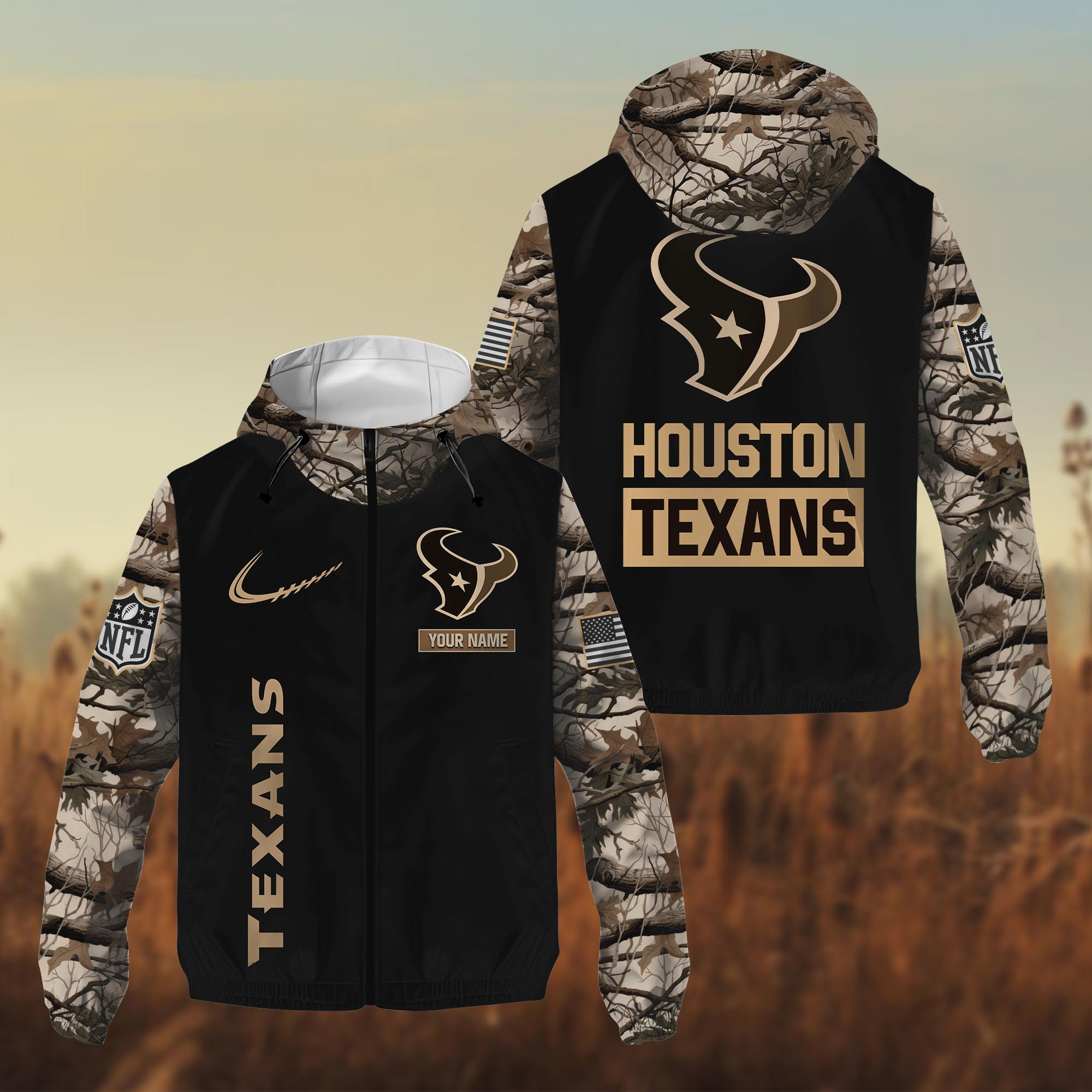 Houston Texans NFL Windbreaker Outdoor Camo Jacket Custom Name