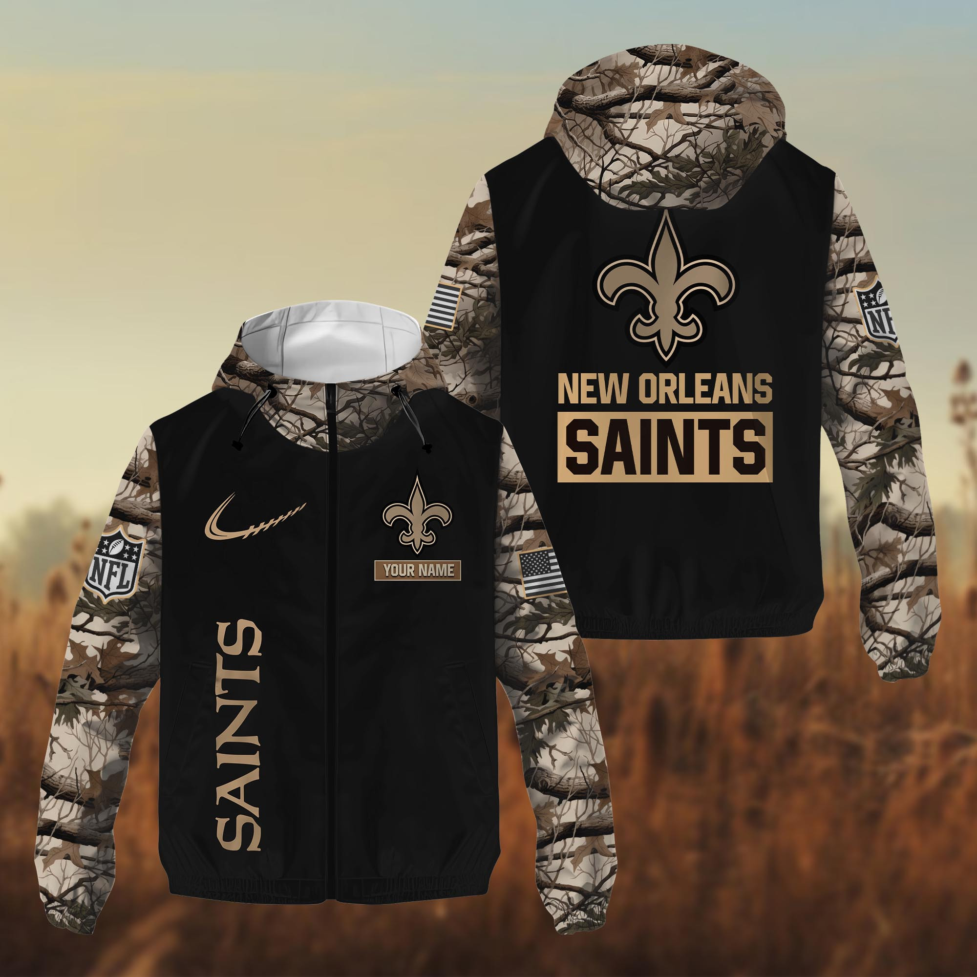 New Orleans Saints Personalized NFL Windbreaker Outdoor Camo Jacket