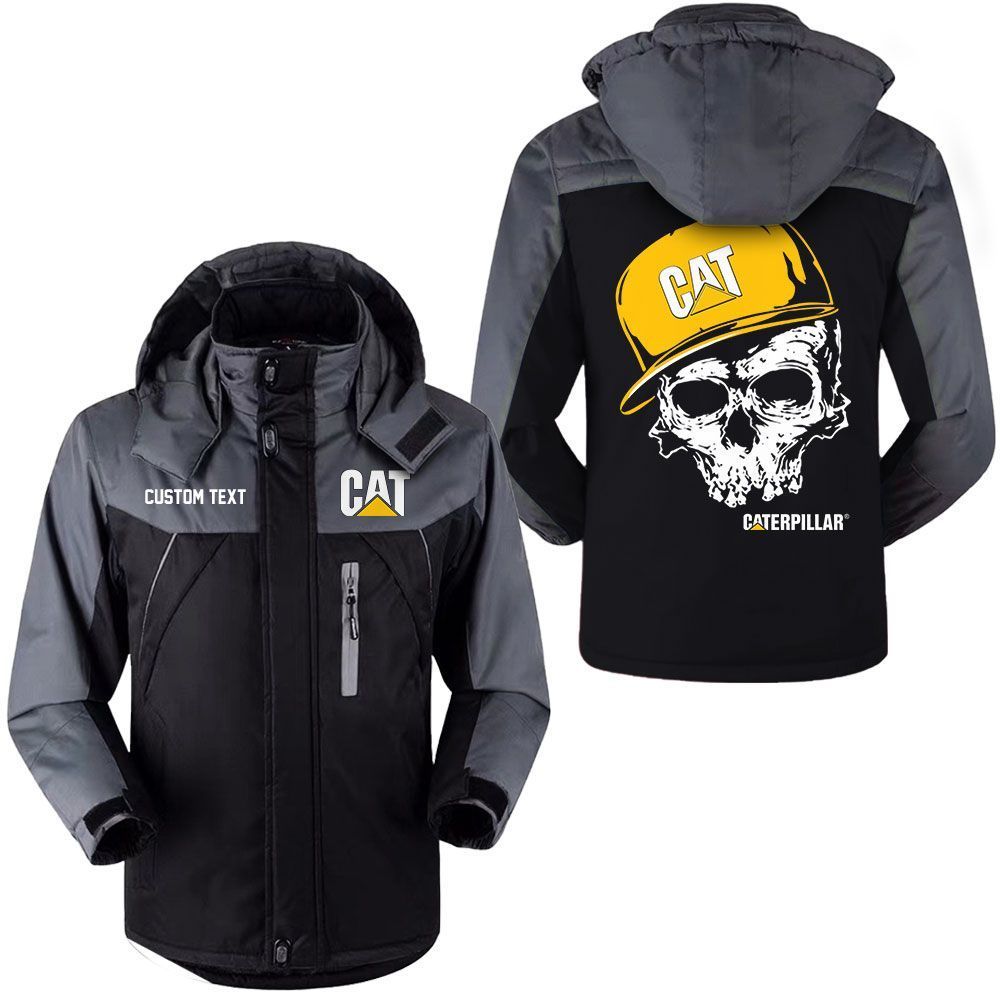 Caterpillar Inc Logo Custom Name Skull Design Hooded Windbreaker Ski Jacket