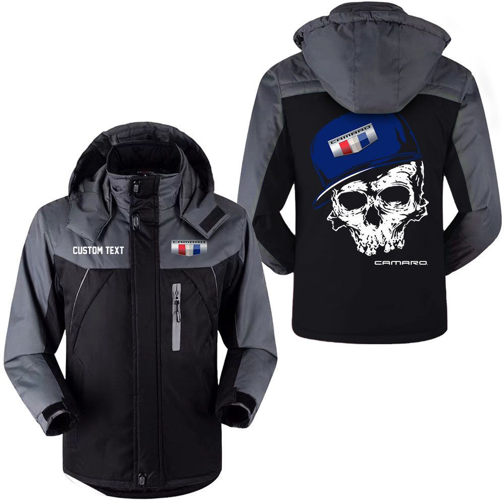 Chevrolet Camaro Logo Custom Name Skull Design Hooded Windbreaker Ski Jacket