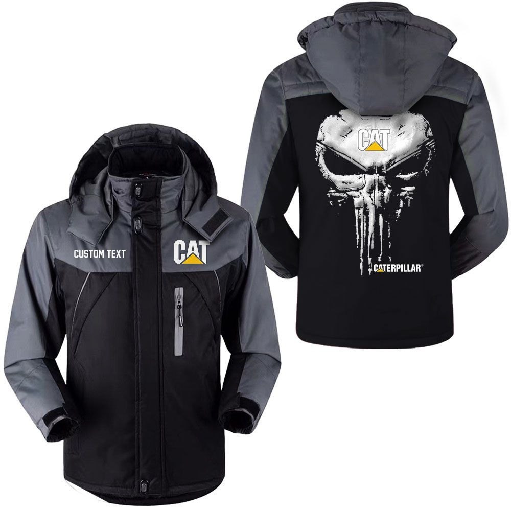 Caterpillar Inc Logo Custom Name Punisher Skull Hooded Windbreaker Ski Jacket