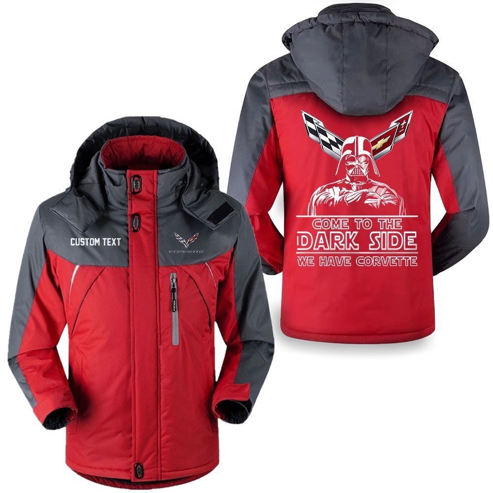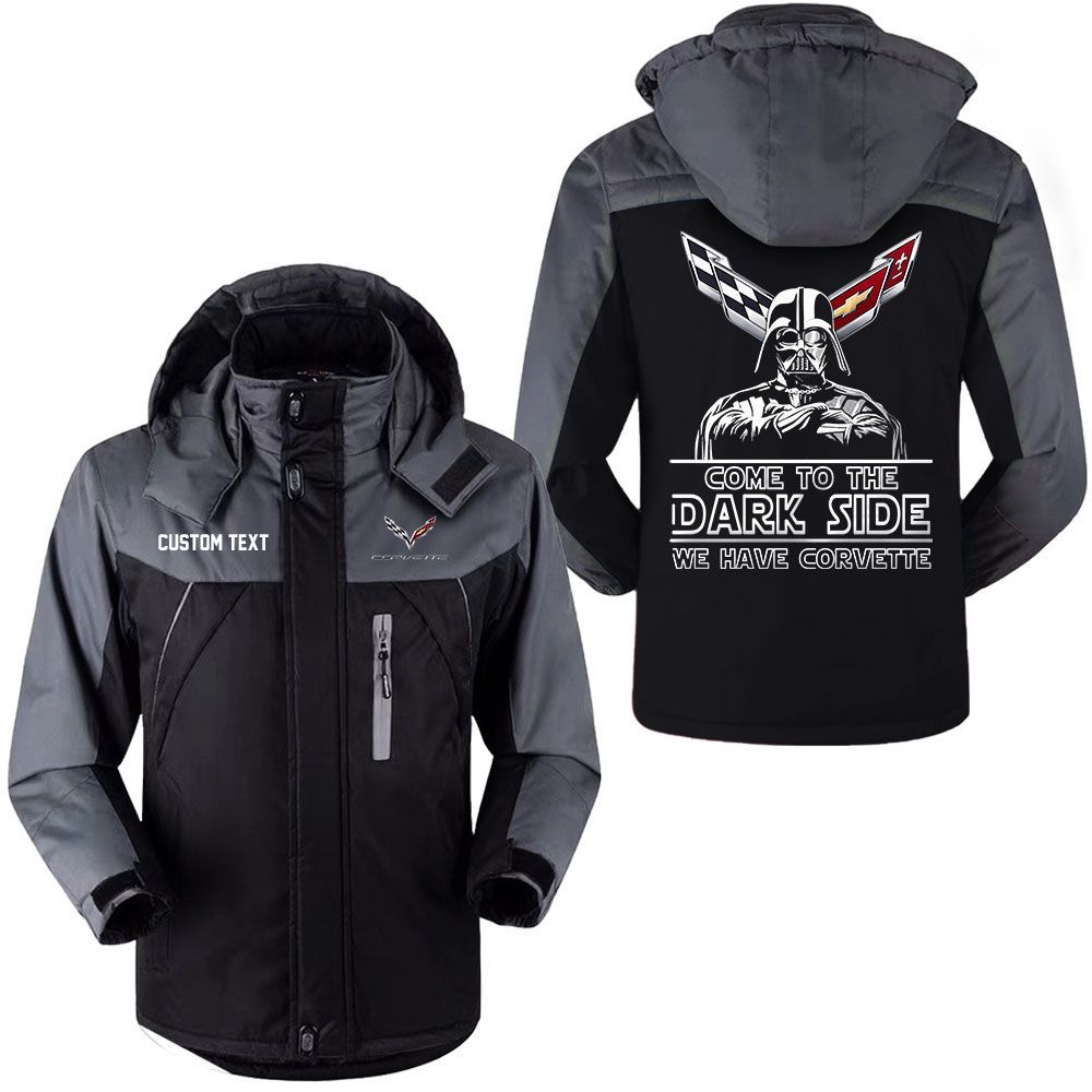 Chevrolet Corvette Logo Custom Name Come to the Dark Side Hooded Windbreaker Ski Jacket