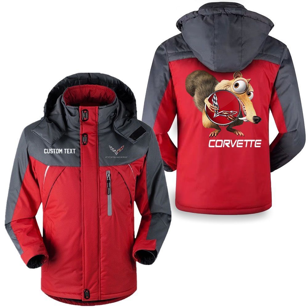 Chevrolet Corvette Logo Custom Name Scrat Ice Age Hooded Windbreaker Ski Jacket