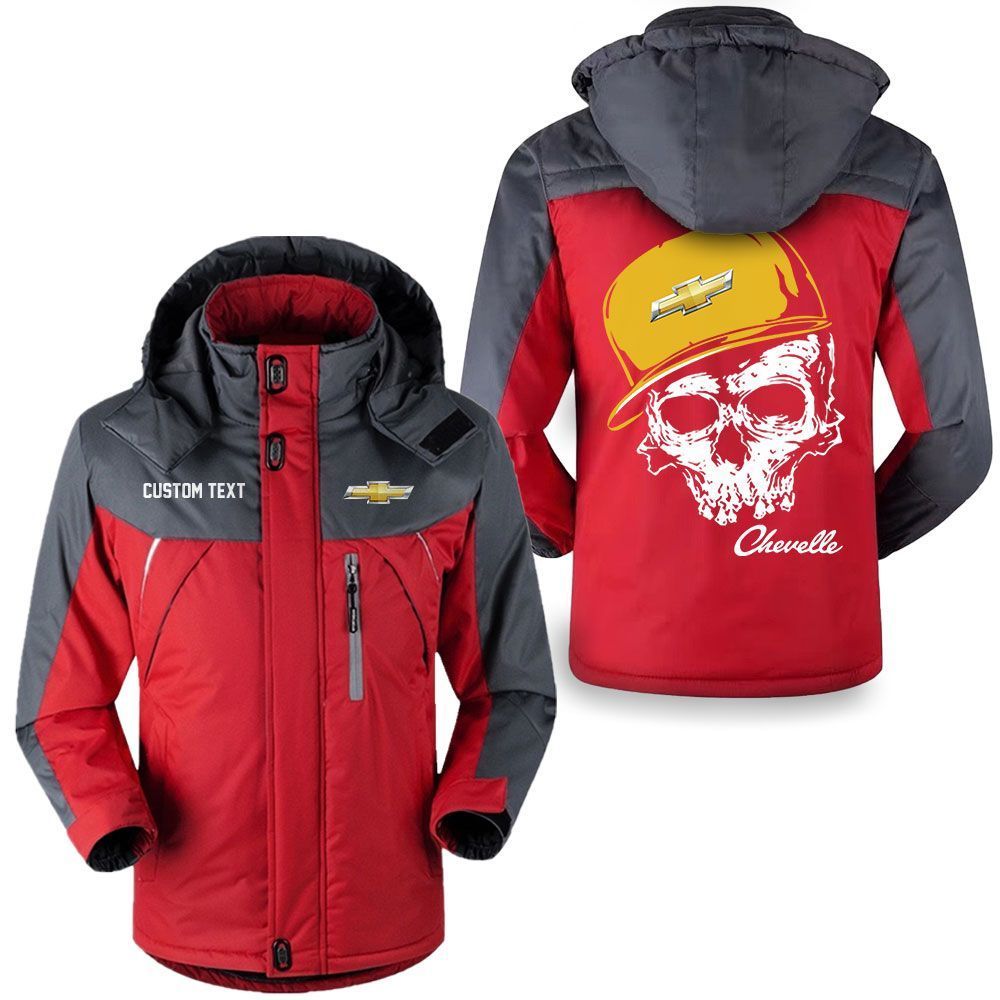 Chevrolet Chevelle Logo Custom Name Skull Design Hooded Windbreaker Ski Jacket