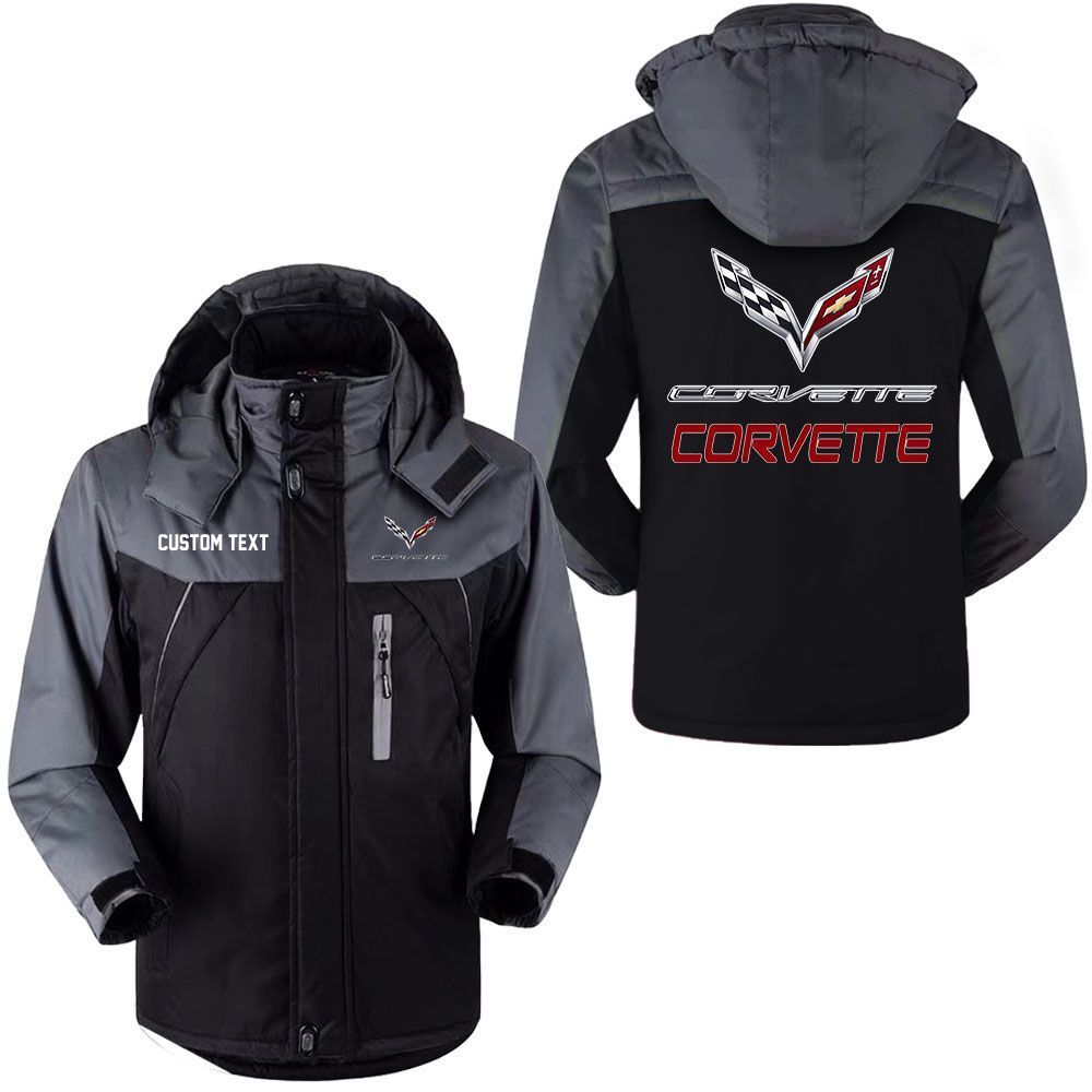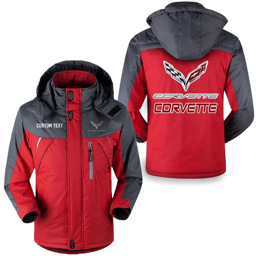 Chevrolet Corvette Logo Custom Name Hooded Windbreaker Ski Jacket