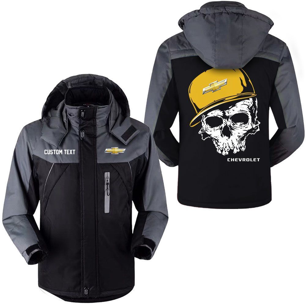 Chevrolet Logo Custom Name Skull Design Hooded Windbreaker Ski Jacket