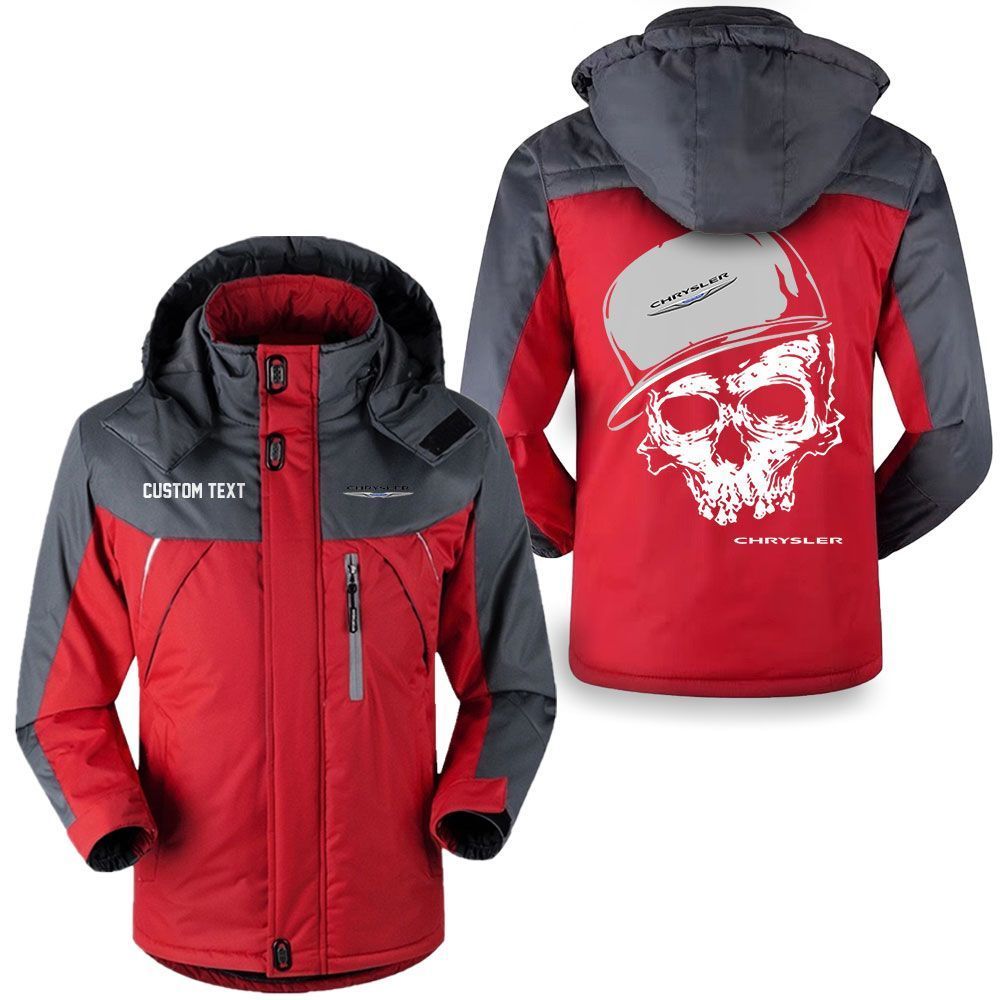 Chrysler Logo Custom Name Skull Design Hooded Windbreaker Ski Jacket