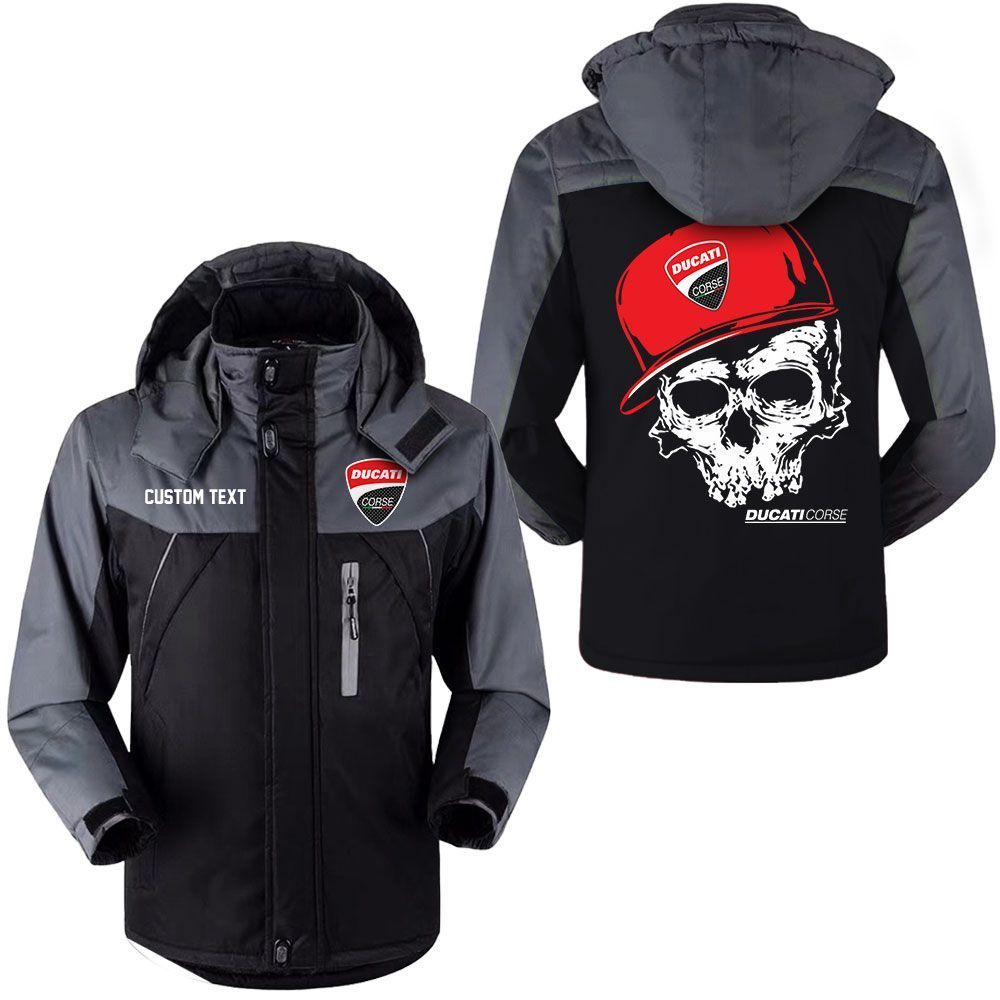 Ducati Corse Logo Custom Name Skull Design Hooded Windbreaker Ski Jacket