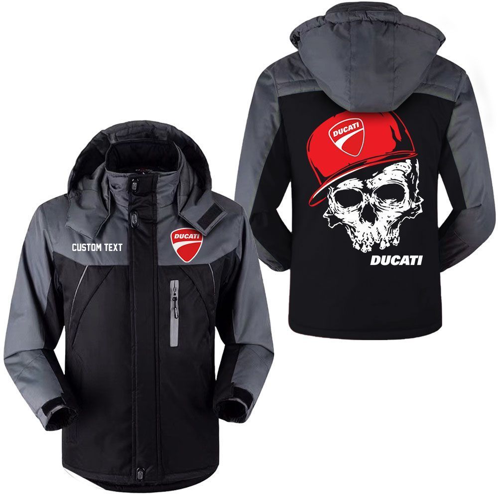 Ducati Logo Custom Name Skull Design Hooded Windbreaker Ski Jacket