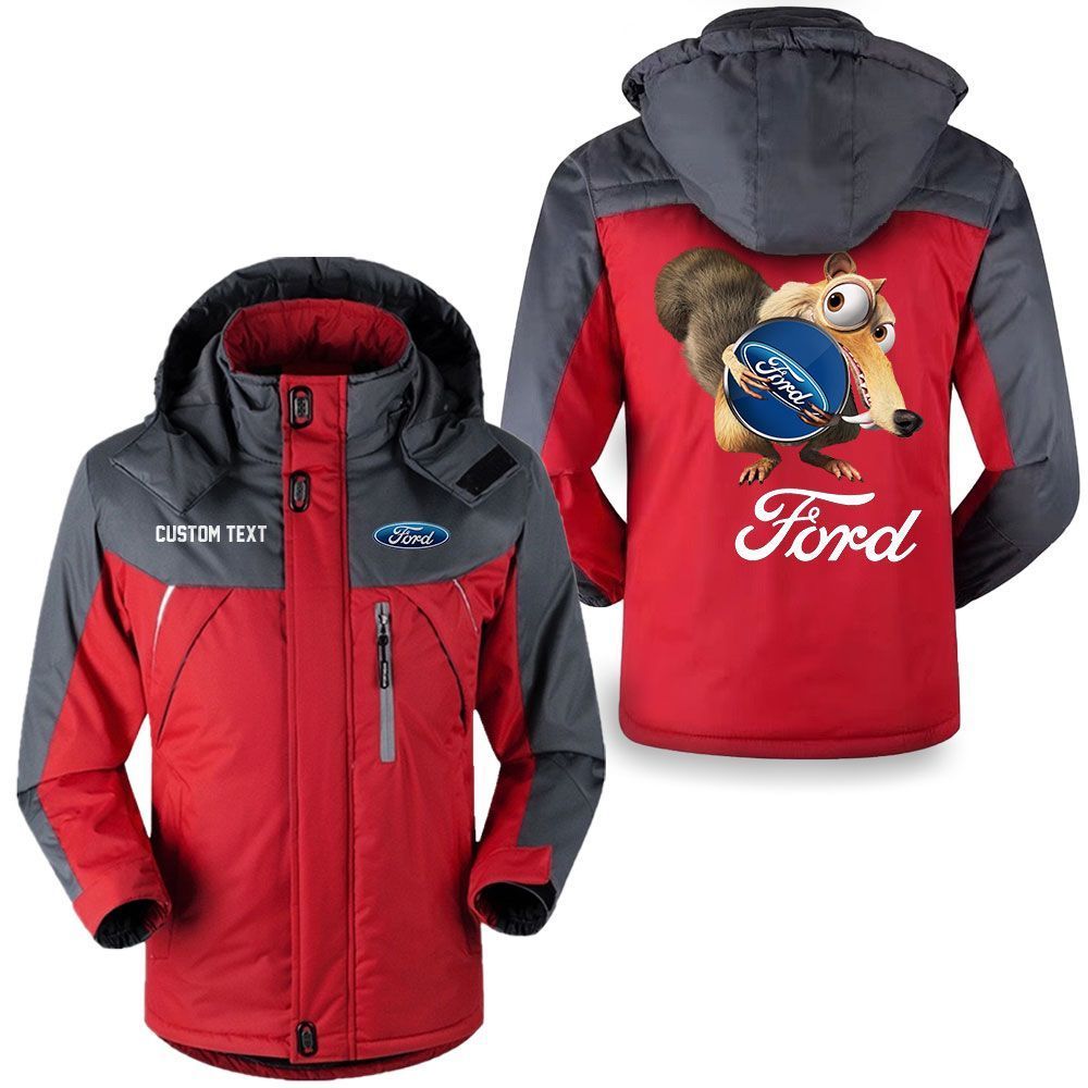 Ford Motor Company Logo Custom Name Scrat Ice Age Hooded Windbreaker Ski Jacket