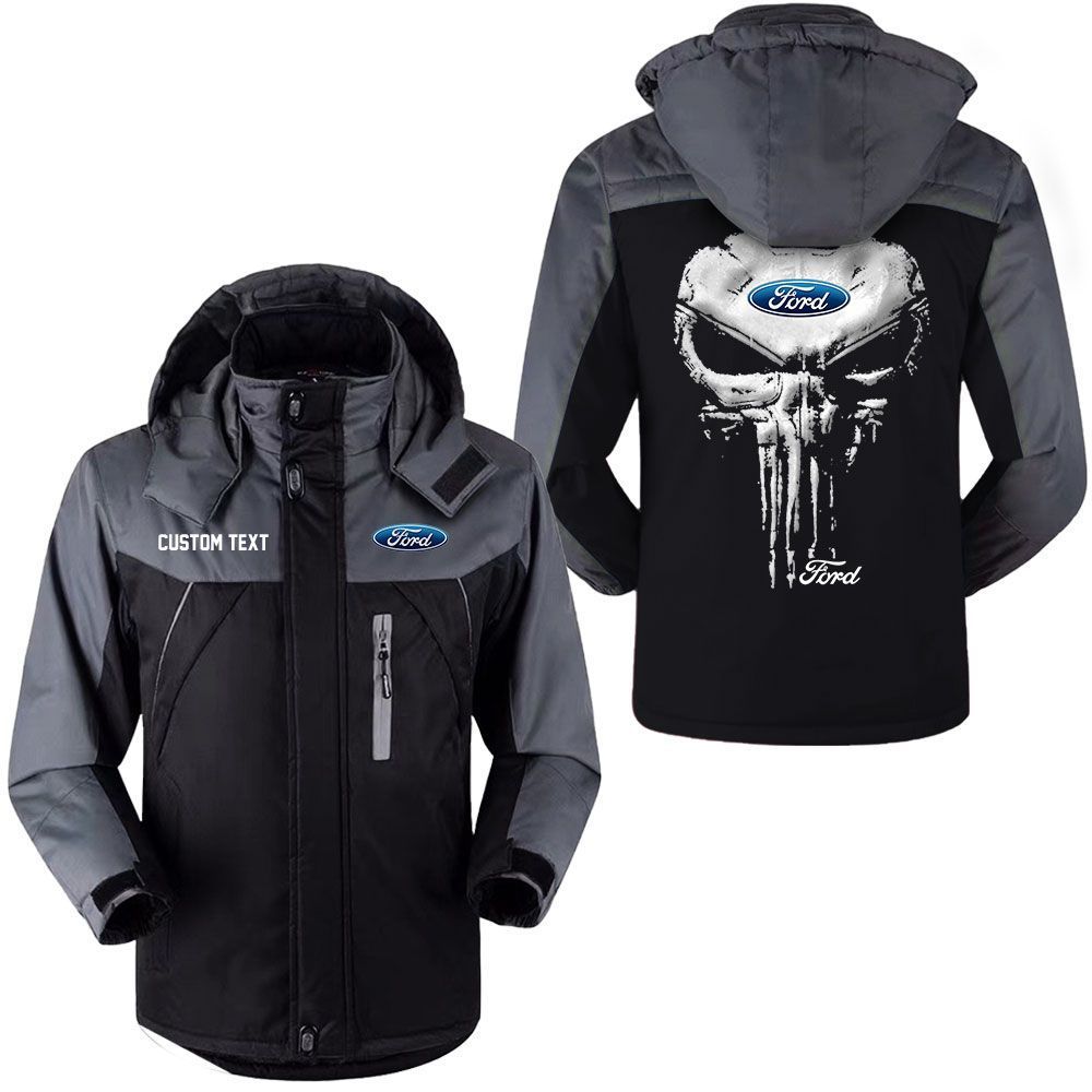 Ford Motor Company Logo Custom Name Punisher Skull Hooded Windbreaker Ski Jacket