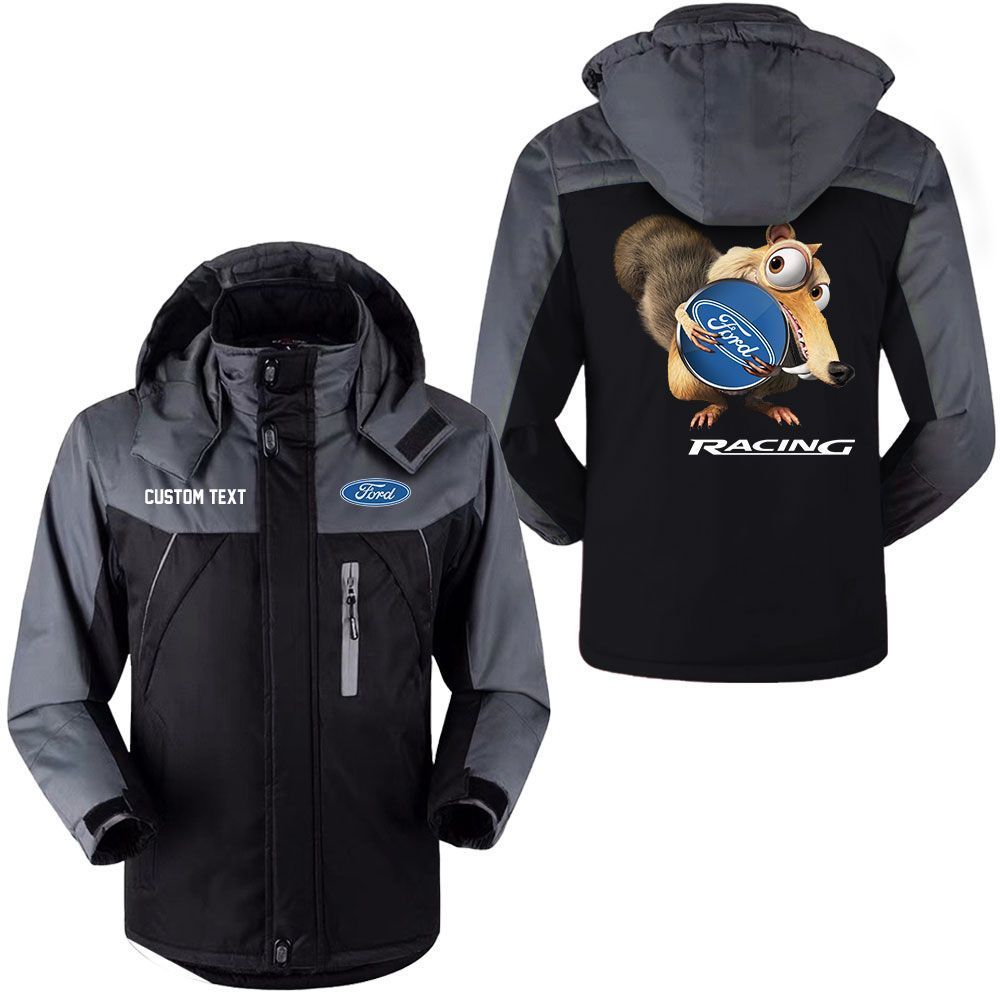 Ford Racing Logo Custom Name Scrat Ice Age Hooded Windbreaker Ski Jacket