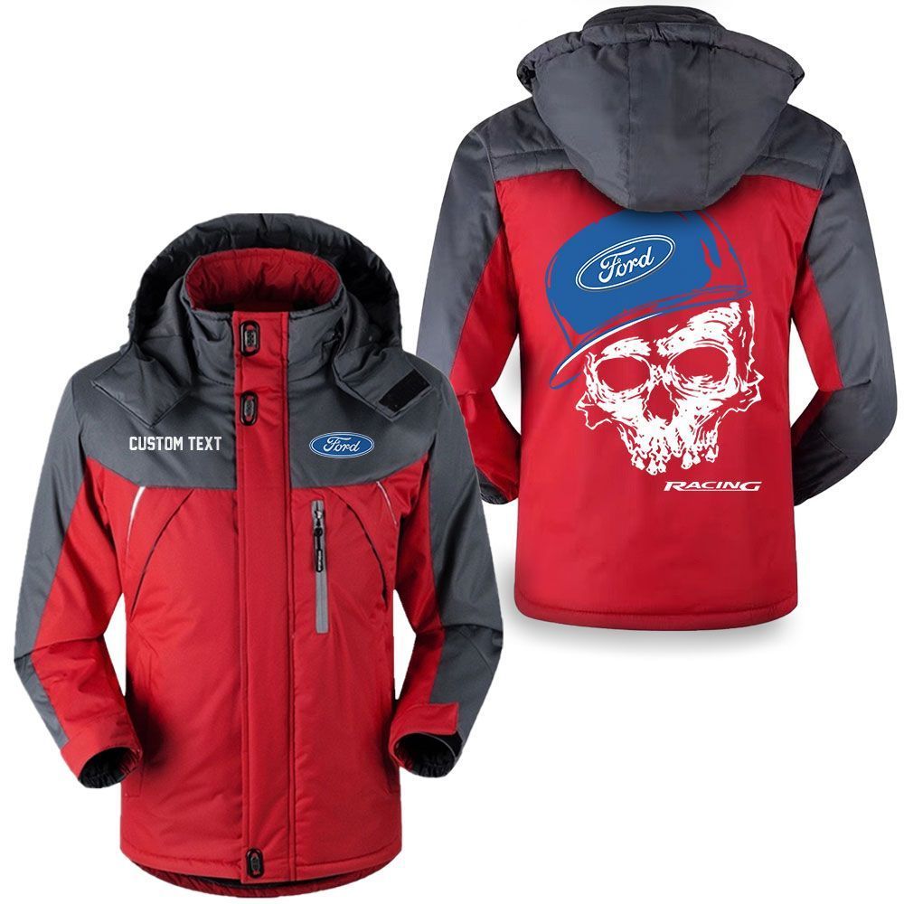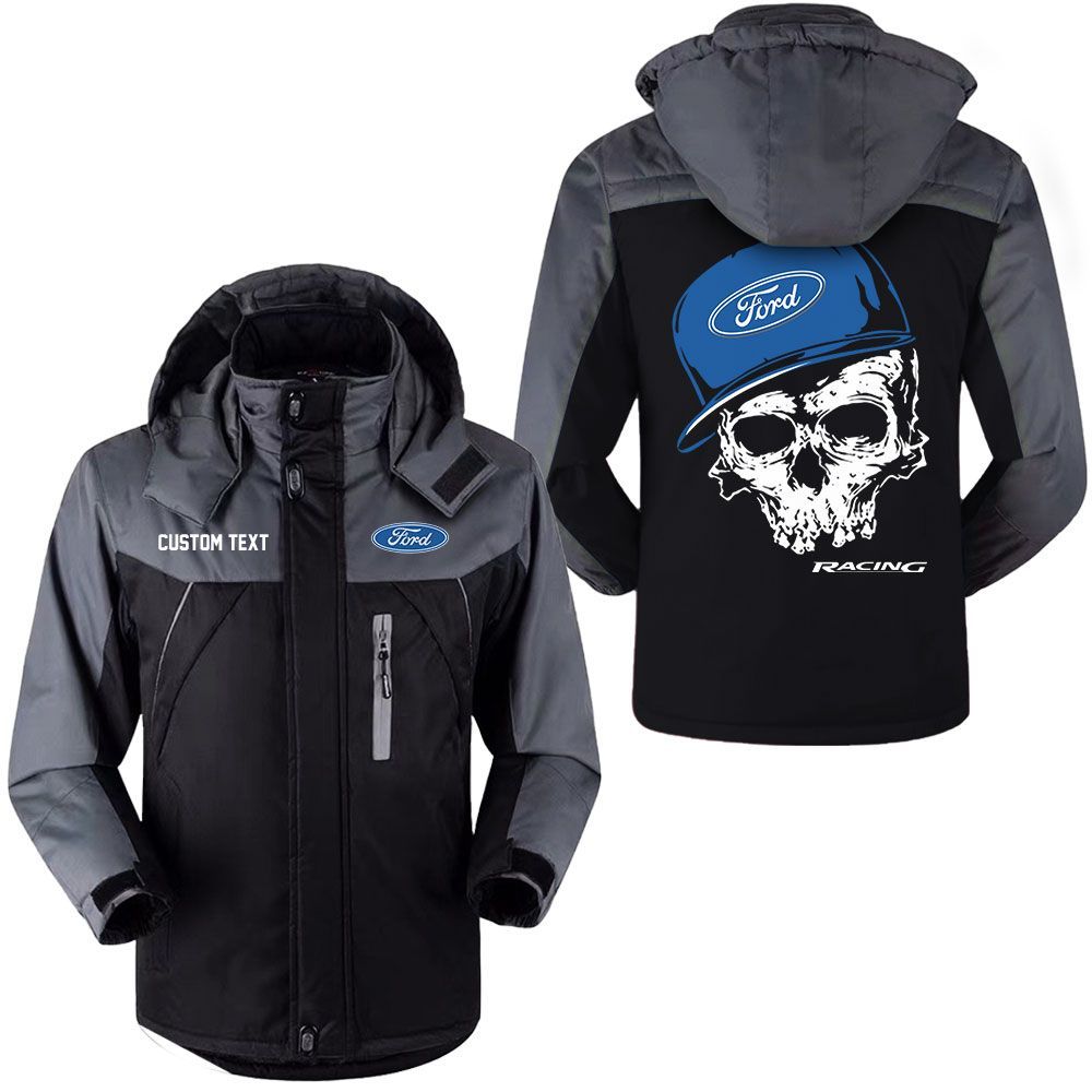 Ford Racing Logo Custom Name Skull Design Hooded Windbreaker Ski Jacket
