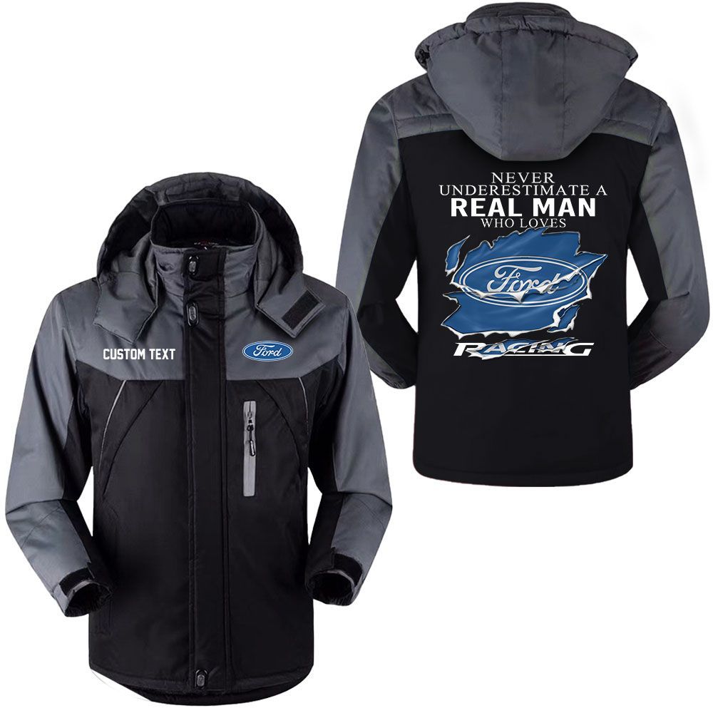 Ford Racing Logo Custom Name A Real Man Who Loves Hooded Windbreaker Ski Jacket