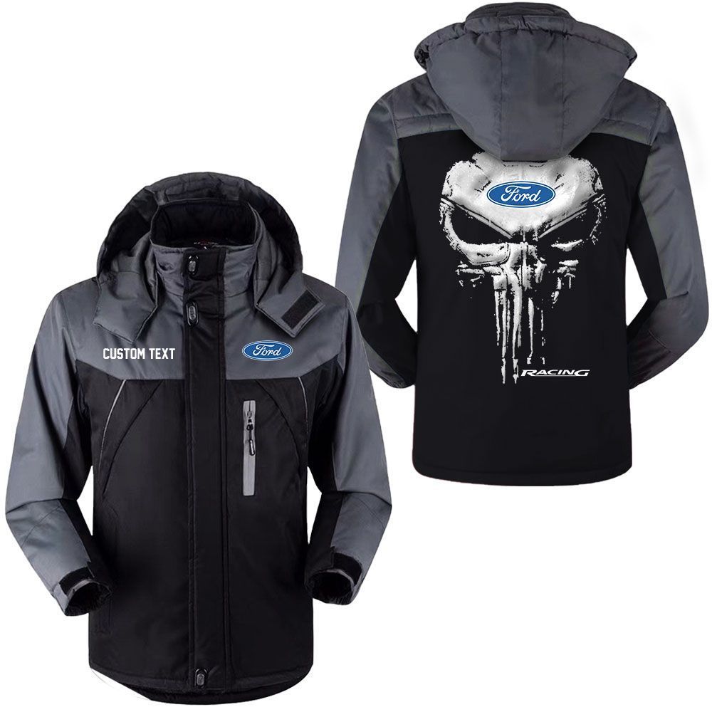 Ford Racing Logo Custom Name Punisher Skull Hooded Windbreaker Ski Jacket