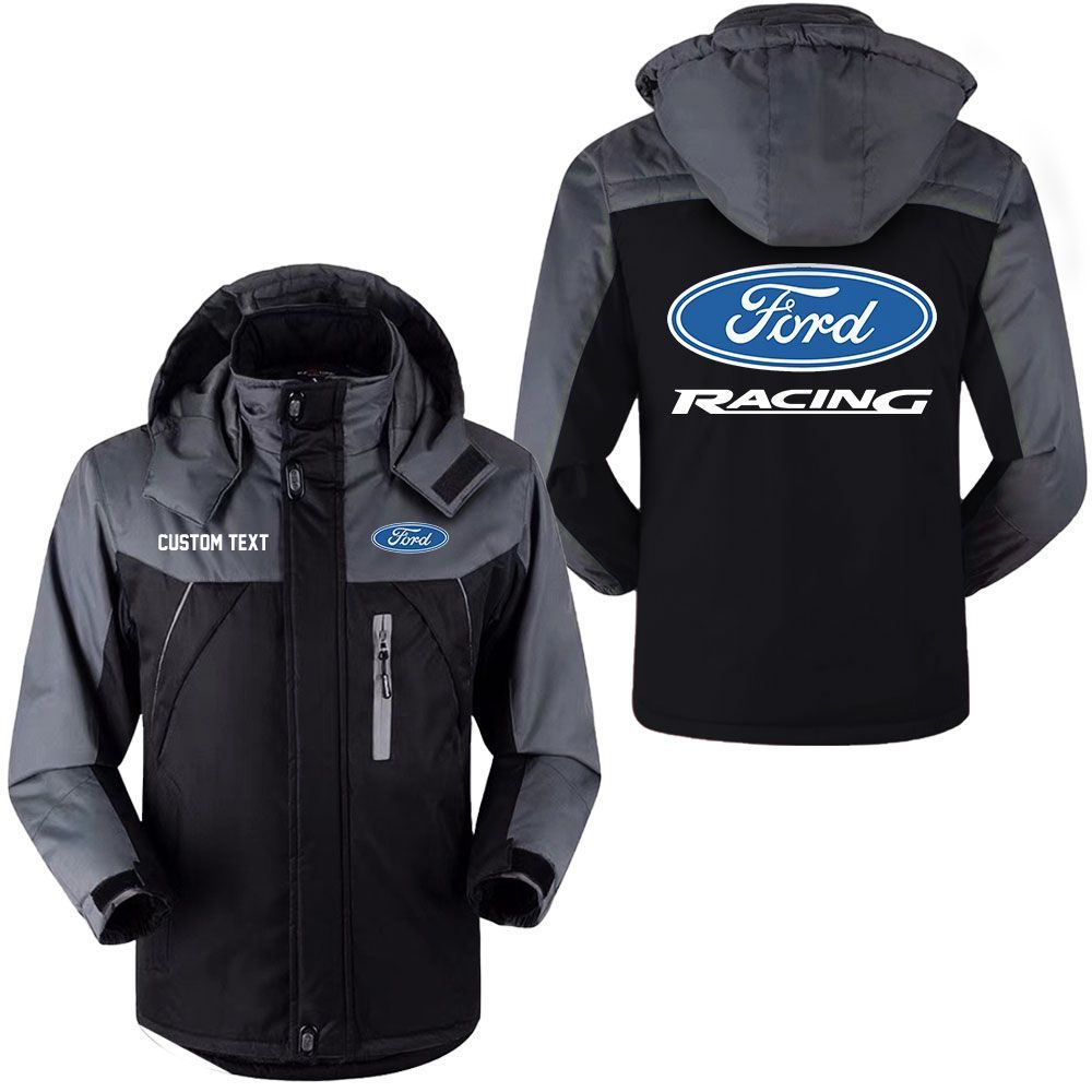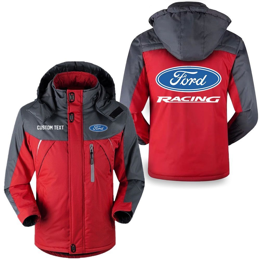 Ford Racing Logo Custom Name Hooded Windbreaker Ski Jacket