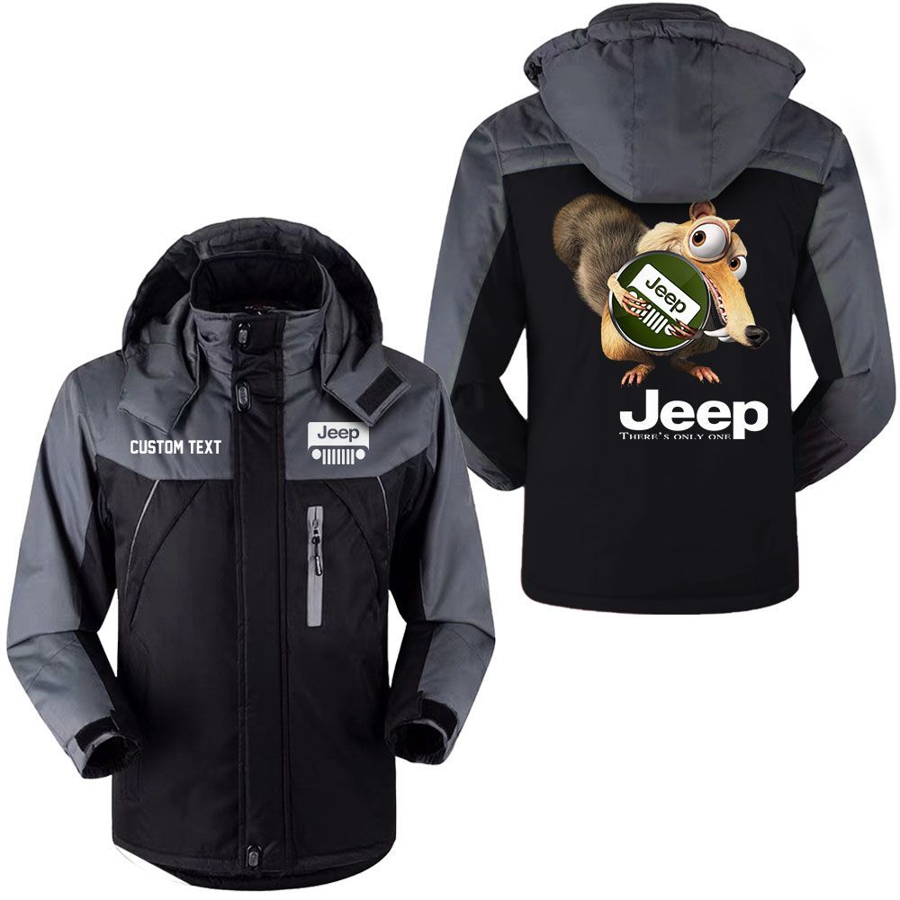 Jeep Logo Custom Name Scrat Ice Age Hooded Windbreaker Ski Jacket