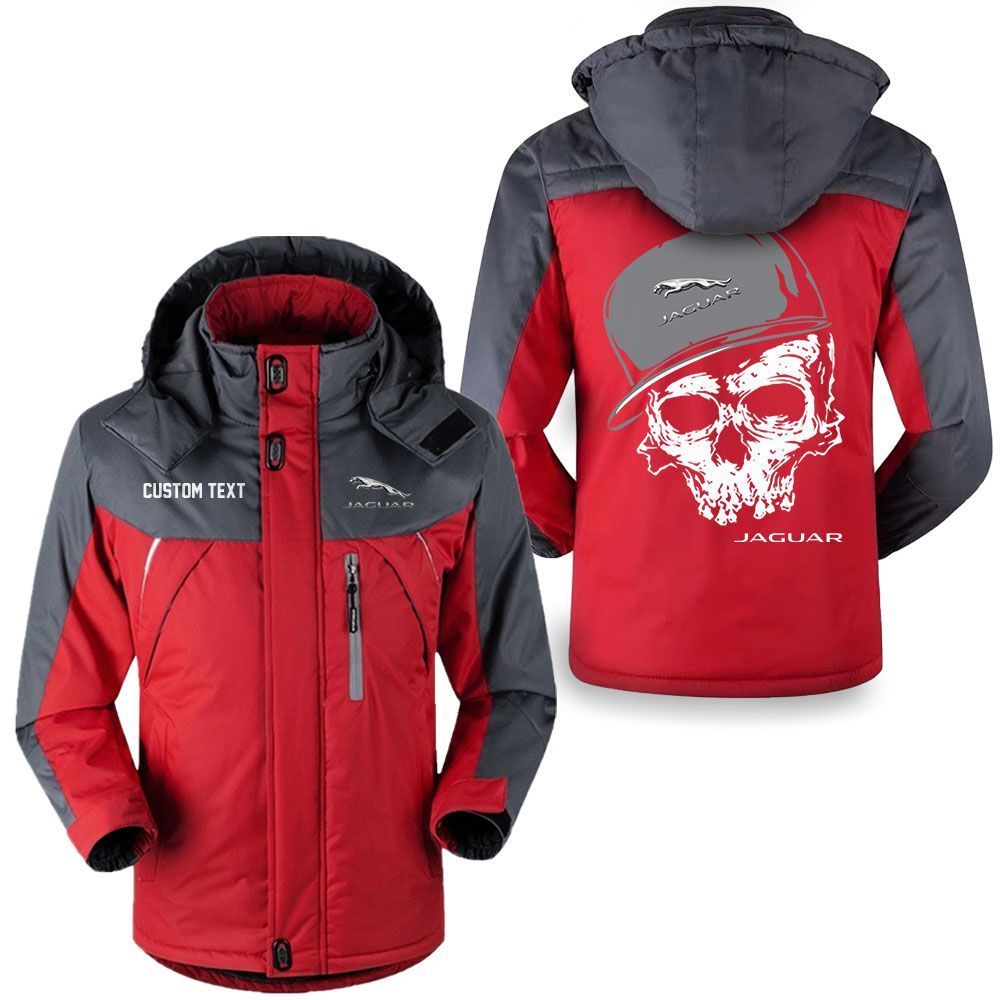 Jaguar Cars Logo Custom Name Skull Design Hooded Windbreaker Ski Jacket