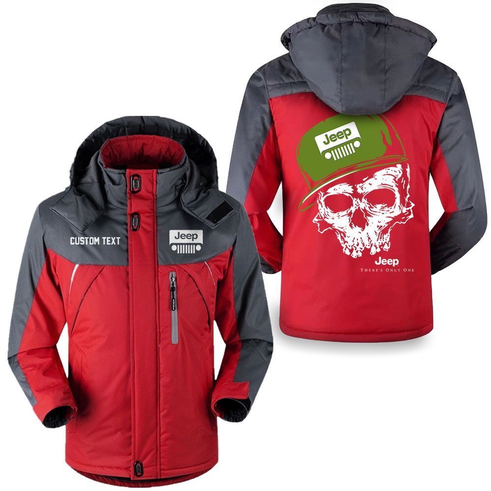 Jeep Logo Custom Name Skull Design Hooded Windbreaker Ski Jacket