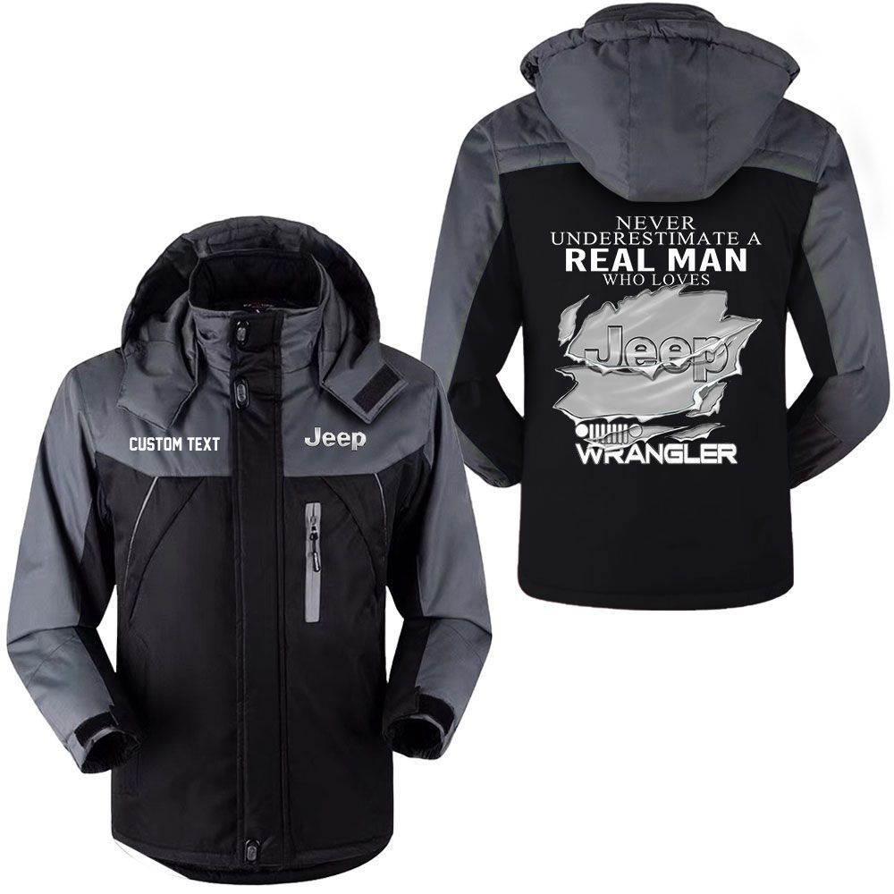 Jeep wrangler Logo Custom Name A Real Man Who Loves Hooded Windbreaker Ski Jacket
