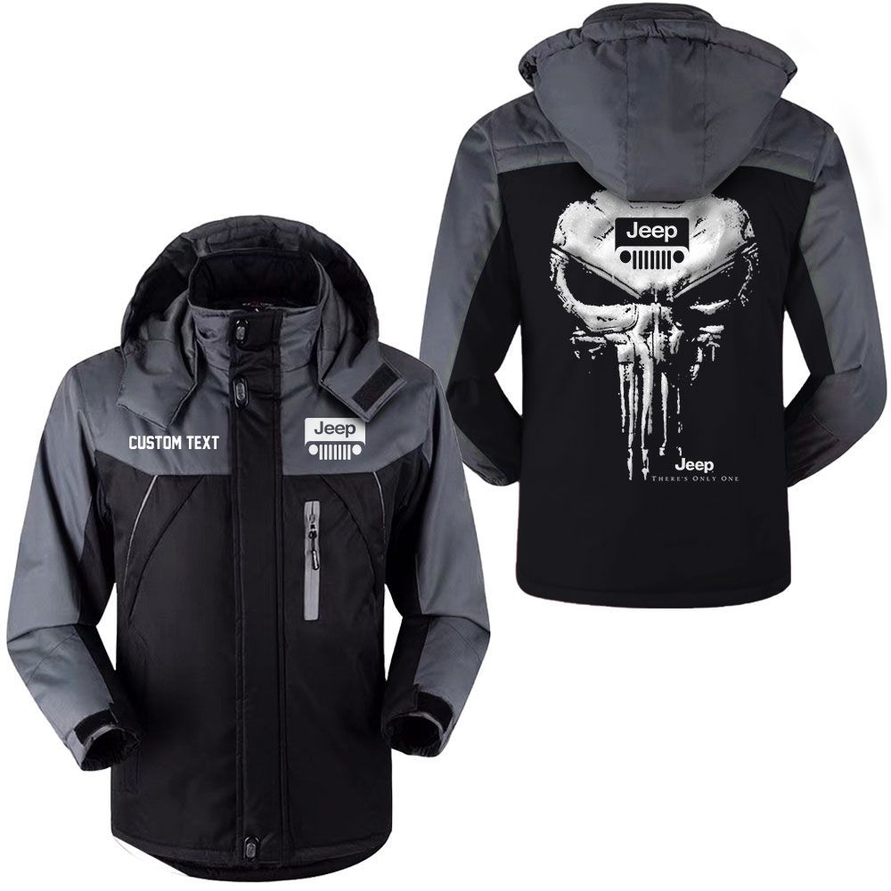 Jeep Logo Custom Name Punisher Skull Hooded Windbreaker Ski Jacket