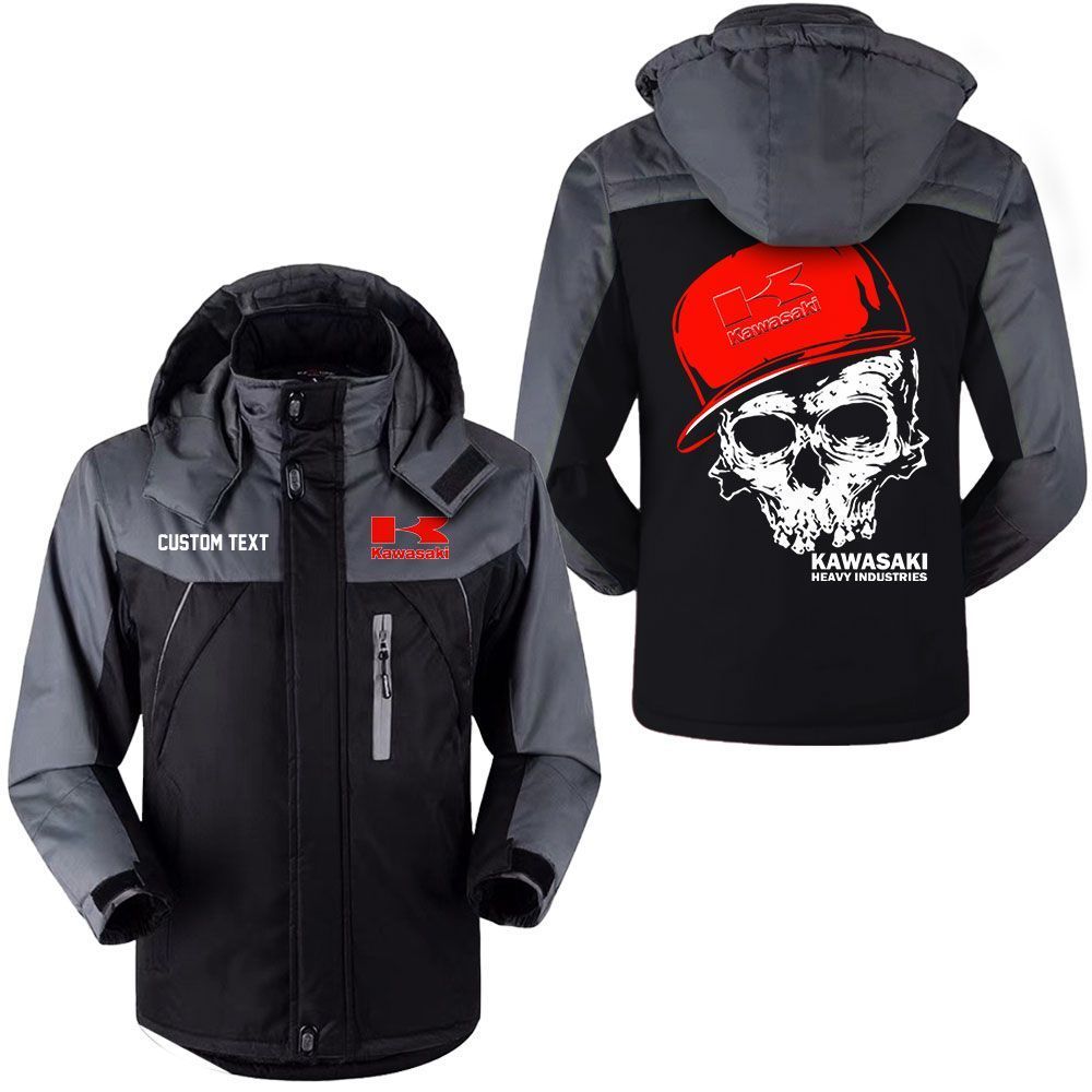 Kawasaki Heavy Industries Logo Custom Name Skull Design Hooded Windbreaker Ski Jacket