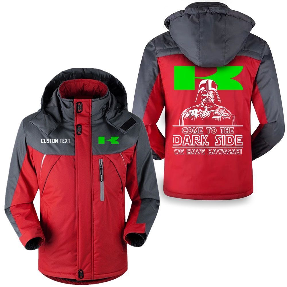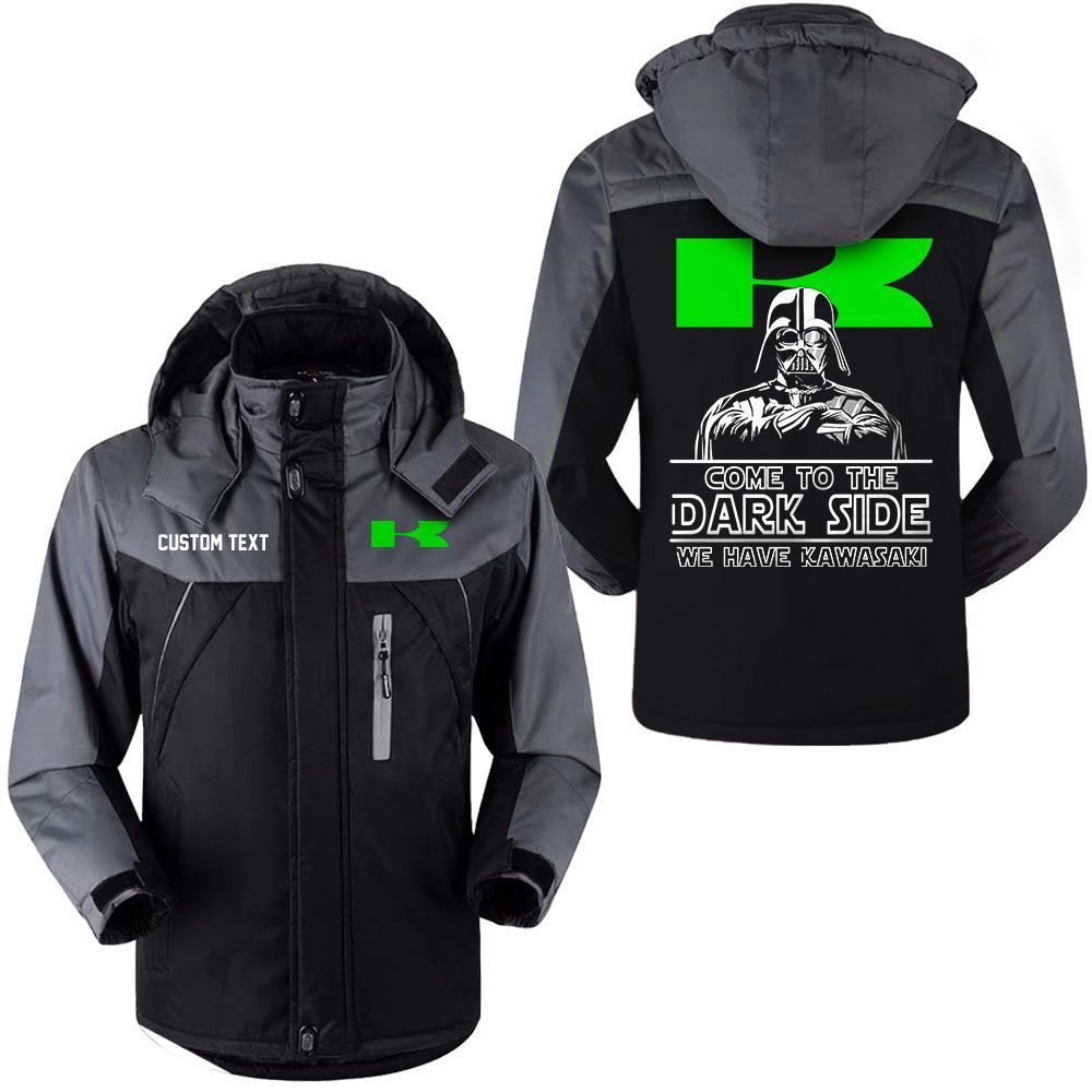 Kawasaki Logo Custom Name Come to the Dark Side Hooded Windbreaker Ski Jacket