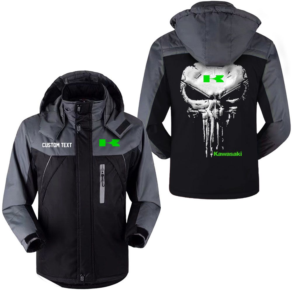 Kawasaki Logo Custom Name Punisher Skull Hooded Windbreaker Ski Jacket