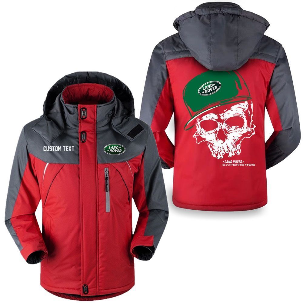 Land Rover Logo Custom Name Skull Design Hooded Windbreaker Ski Jacket