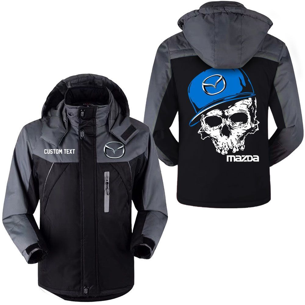 Mazda Logo Custom Name Skull Design Hooded Windbreaker Ski Jacket